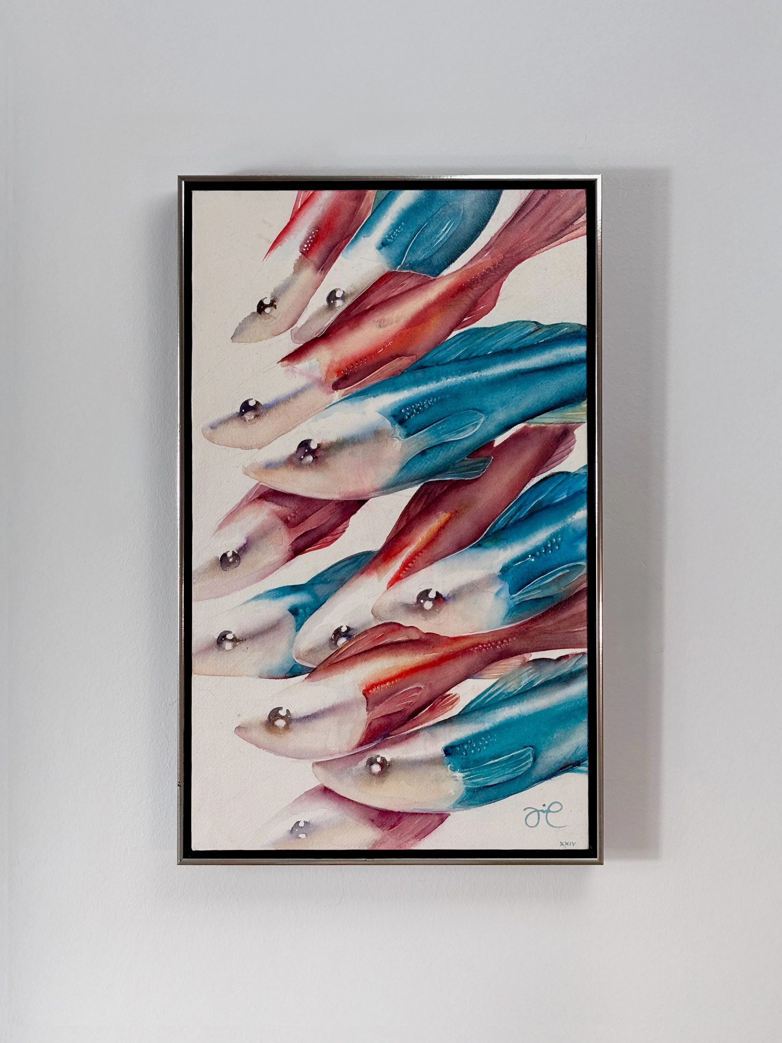 Watercolor on Arches 356 gsm , 50 × 30 cm, varnished and mounted in a shadow gap frame. (Sold).